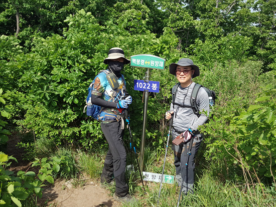 나무에 가려 조망이 없는 1022봉에서는 개인사진 촬영을 했다.
