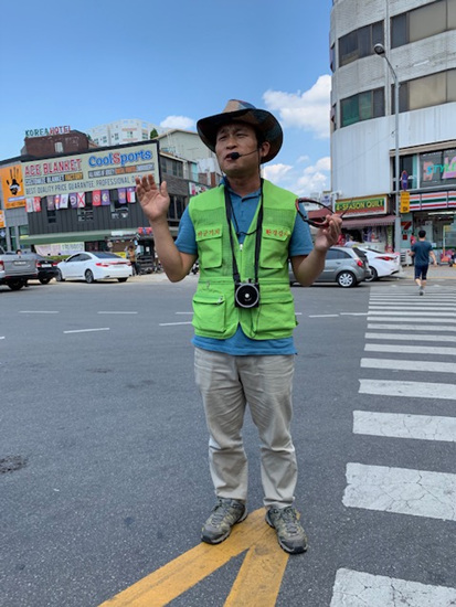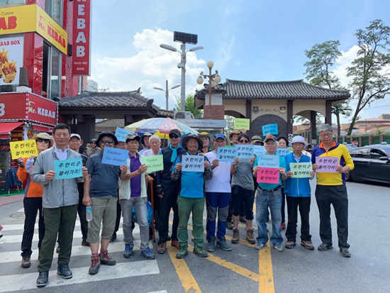 점심 식사 후 산악회 회원들이 찾아간 곳은 바로 K-55 미군기지 정문 앞이었다. 미리 준비하고 있던 김성기 평택평화시민행동 공동대표를 만났다.