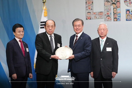 일본에서 도예로 유명한 제15대 심수관인 심일휘 씨가 ‘사츠마 난화도 접시’를 문 대통령에게 선물했으며, 가수 정수라 씨는 ‘난 너에게’와 ‘환희’를 열창했고, 오사카 건국중․고등학교 전통예술부 학생들은 사물놀이와 사자춤으로 간담회장 분위기를 돋구었다.