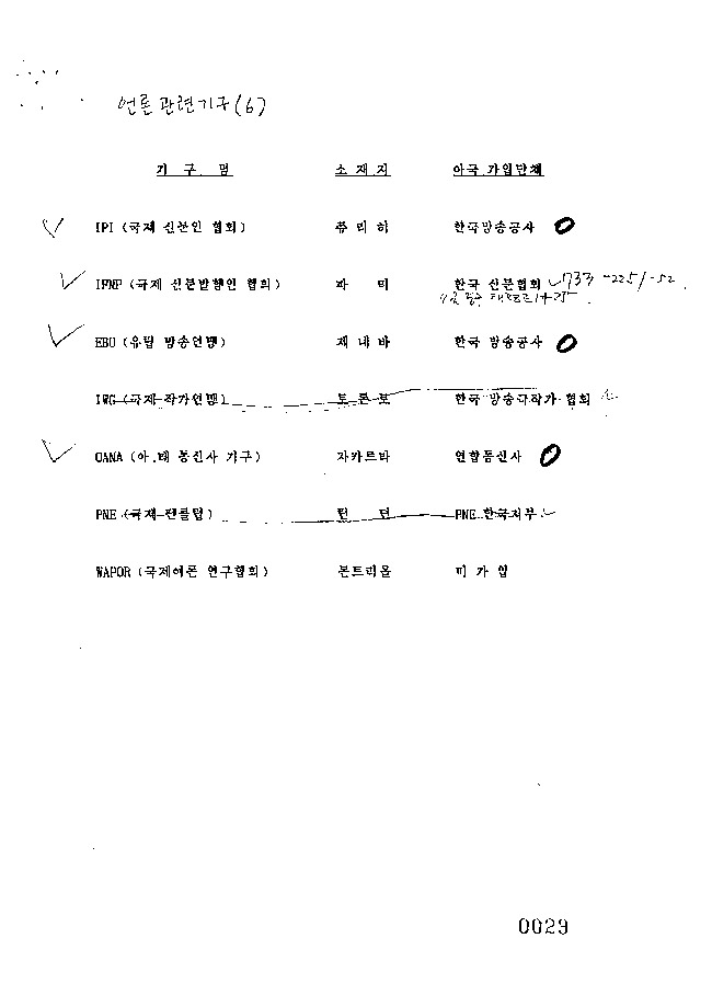 이와 비슷한 문서가 언론(한국방송공사(KBS) 등), 여성(한국여성단체협의회 등), 항공(한국관광공사 등), 종교(한국침례교회연맹 등) 관련 단체에 보내졌다(28-34쪽). 아울러 국제기구들이 위치해 있는 해당국 주재 대사관에도 따로 연락이 간다.