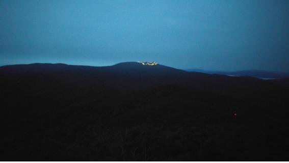 평탄한 길을 어느 정도 지나자 나무계단이 나온다. 처음 맞이하는 오르막길이다. 누군가 지리산 영산봉 계단이 170개였는데 앞에 놓인 계단은 800개나 된다고 엄포를 놓았지만 막상 오르다보니 얼마 되지 않았다. 노인봉이 가까이 다가오는데도 언덕이 나타나지 않고 평지가 계속된다. 오른쪽으로 보이는 황병산 꼭대기에는 공군 레이다기지의 불빛이 어둠을 밝힌다.