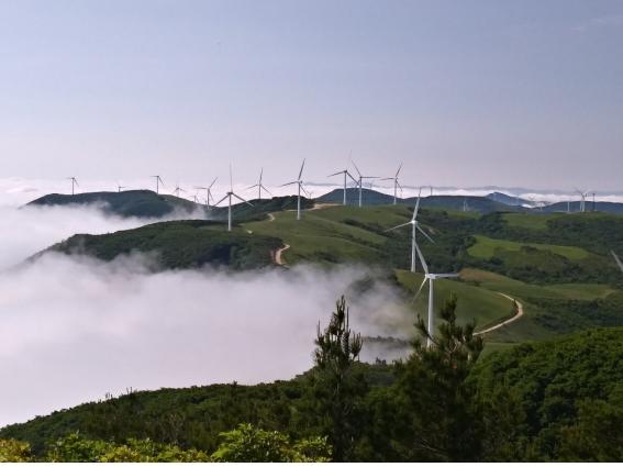 한바탕 소동을 벌인 후 선자령으로 내려가는 길은 엄청나게 빨랐다. 가장 염려했던 뙤약볕은 구름이 적당하게 막아주었고 초지를 가르는 등산로도 힘들지 않았다. 넓은 초지 곳곳에 풍력발전기가 세워져 있다. 풍력발전기는 날개 지름이 40~50미터에 이르고 높이도 50~80미터나 되는 규모에 바람을 타고 돌아가면 소리도 엄청나게 크다.