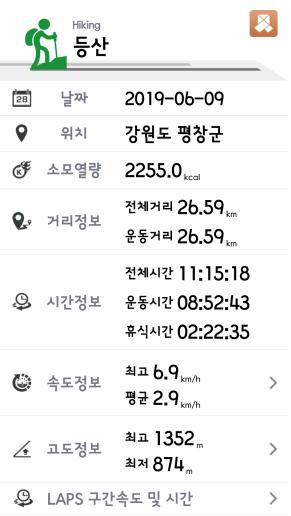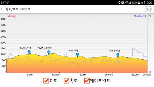 선자령에서 잠시 쉬며 기운을 보충하고 나선 하산 길은 나는 듯이 빨랐다. 기록을 보니 40분에 3.2Km의 속도로 걸었고, 전체 26Km가 넘는 거리를 11시간 만에 완주하였다. 아무리 평지가 많은 구간이하 해도 우리의 능력이 어마어마하게 향상된 것만은 확실하다.