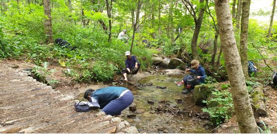 대관령으로 내려오는 길에 시원한 물이 흐르고 있어 발을 담갔다. 먼 거리를 지탱해준 다리의 피로가 확 풀린다. 물이 어찌나 찬지 채 1분도 견디지 못하고 나와야 했다.