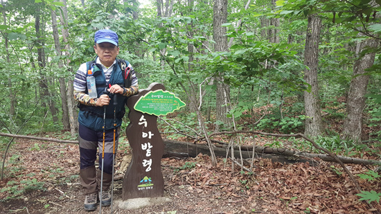 잠시의 달콤한 휴식을 마치고 다시 출발하여 20여분 걸으니 수아밭령이 나온다. 한강 최상류 마을 참죽과 낙동강 최상류 마을 화전을 잇는 고개라는 것과 예전에 이곳에서는 밭벼를 심었는데 현재는 재배하는 곳이 없다는 설명을 눈에 담으며 산행은 계속 이어졌다.
