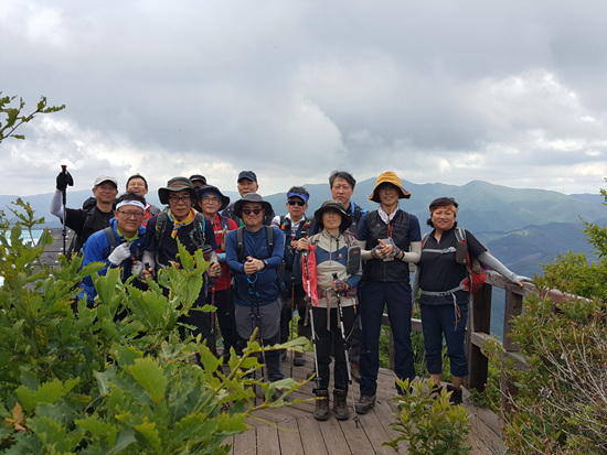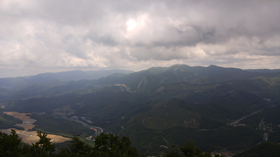 수아밭령 출발 후 약간은 험한 오르막을 오르고 나니 작은 전망대로 길은 이어진다. 계속 숲길을 걷다보니 나무와 풀만 보여 조금 지루했는데 일시적으로나마 전망대가 시야를 시원하게 해준다. 그리고 조금 더 지나 바로 비단봉(1281m)이 나온다.