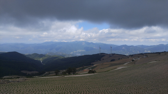 점심을 마치고 다시 산행이 시작되었고 고랭지 밭을 옆으로 하고 언덕에는 커다란 풍력발전기들이 보이기 시작한다. 평소 풍력발전기를 가까이에서 보고 싶었는데 막상 가까이 갈수록 발전기의 거대함에 위압감이 들었다. 돈키호테라도 감히 달려들기 어려웠으리라.