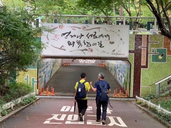 9시 조금 넘은 시각 과천역 7번 출구에서 등산로 입구에 이르는 길. 등산객이 드문드문 눈에 띄긴 하나 길목의 가게문마저 닫혀있어서 평소 휴일 관악산과는 완전 딴판이다.