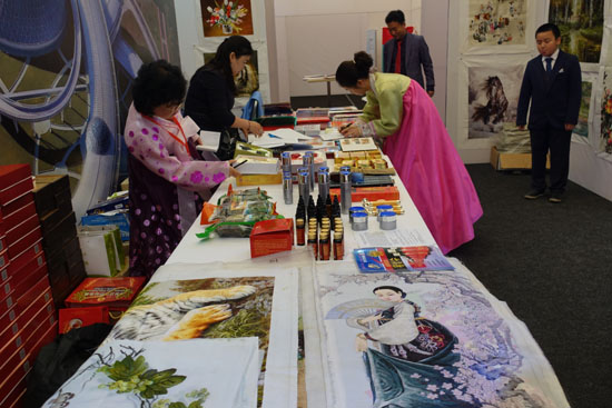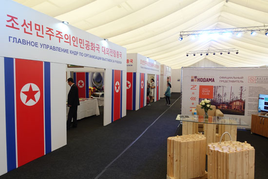 전시장에는 조선민주주의인민공화국 대외전람총국에서 설치한 두 개의 부스가 마련돼 북한 상품과 러시아어로 된 북측 서적과 화보 등이 전시, 판매되고 있다.