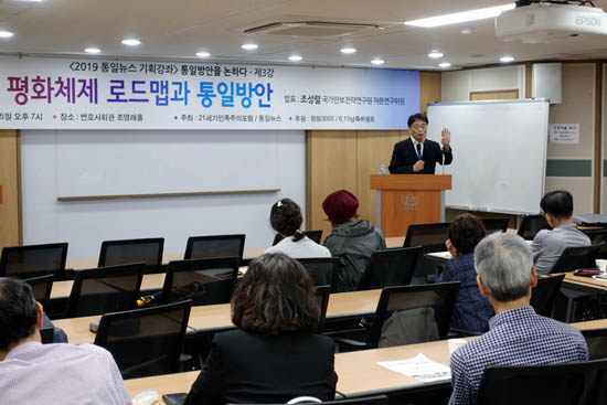 조성렬 국가안보전략연구원 자문연구위원은 9월 5일 오후 7시 서울 광화문 변호사회관 조영래홀에서 열린 ‘2019 통일뉴스 기획강좌’ 제3강 강연자로 나서 ‘한반도 평화체제 로드맵과 통일방안’을 주제로 발표했다.