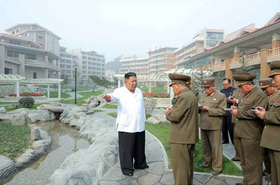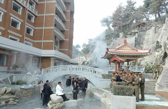 아울러 “온천관광지구를 인민군대가 건설하였는데 건설에 동원된 부대는 싸움준비도 잘하고 건설도 멋들어지게 잘한다고, 군인건설자들이 당의 뜻을 높이 받들고 조국의 미래와 인민의 행복을 위하여 정말 보람있는 일을 하였다고 높이 평가하시였다”고 덧붙였다.