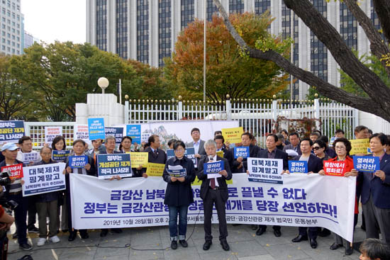 이들은 “강경화 외교부 장관이나 문재인 대통령 스스로 인정하듯 금강산관광은 유엔 대북 제재 대상이 아니다”며 “우리 정부는 양 정상이 합의했음에도 미국만 의식한 채 금강산 관광을 재개할 아무런 방안도 내놓지 못했다”고 지적했다.