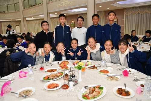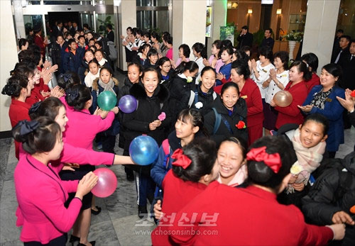 평양지국을 운영하고 있는 <조선신보>는 예술단 학생들이 평양호텔에 도착해 환영을 받고 식사를 즐기는 모습을 담은 여러 장의 사진을 평양발로 보도했다.