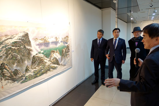 개막식 직후 대표작 <백두산 천지>(1990)에 대해 이양재 총감독은 “백두산을 많이 그렸다”며 “본인의 득의작, 마음에 드는 작품에는 ‘줄기줄기 피어린 자욱’, ‘불요불굴’이라는 낙관을 찍었다”고 설명하고 <백두의 성지 푸름을 자랑한다>(1983)에 대해서는 “북에서 그려진 또는 남에서 그려진 그 많은 백두산 가운데 오직 한 점만 내리닫이(세로)로 길게 그려져 있다”고 소개하기도 했다.