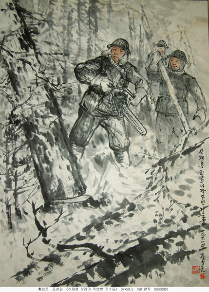 전주희 큐레이터는 “일상에서 노동을 하고 있는 사람들 모습이다. 산림으로 벌목을 하러 간다든지, 리명수발전소를 건설하는 모습들을 아주 다이나믹한 구도로 화면 속에 담고 있다”며 “특히 노동에서만큼 역동적인 구도를 펼치는 것은 없다. 노동화와 풍경화들이 구도적으로도 조금 다른 특이점을 보이고 있다”고 설명했다.