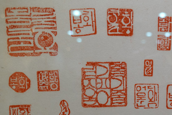 낙관에 새긴 문구 ‘줄기줄기 피어린 자욱’은 <김일성 장군의 노래> 중 "장백산 줄기줄기 피어린 자욱 / 압록강 굽이굽이 피어린 자욱..."에서 따온 것이다,
