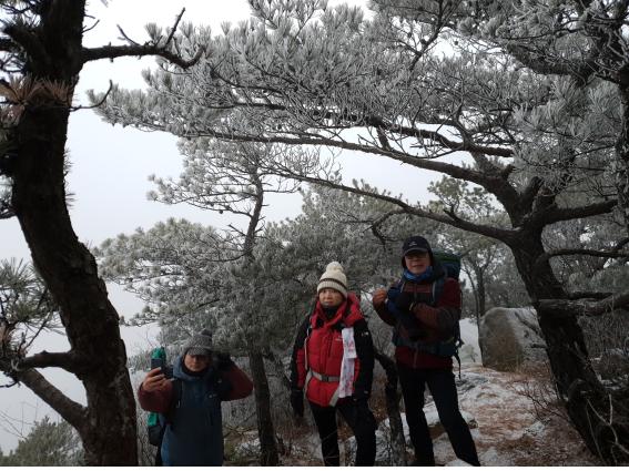 매봉을 지나 진관사 방향으로 하산하는데 소나무에 상고대가 피어있다. 아름답다.