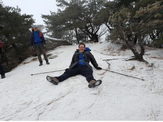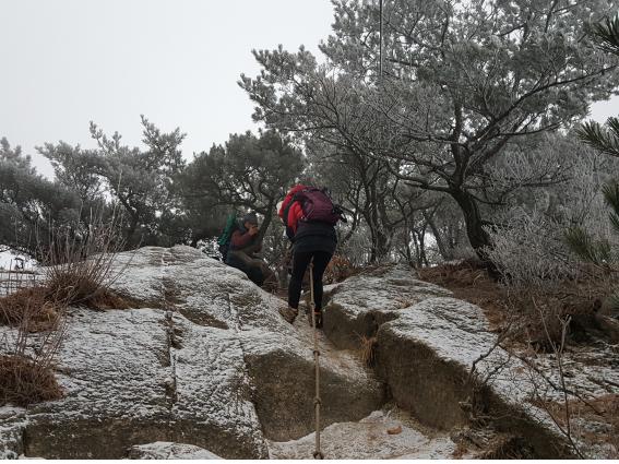 새해 첫눈이 내린다. 조금 내리다 말겠지 했는데 계속 내린다. 미끄럽지만 기분이 좋다. 새해 첫날에 첫눈을 맞으며 산행을 하다니 좋다. 하지만 100프로 좋을 수는 없는 법. 눈 때문에 새해 첫해를 보긴 글렀다.