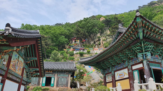 한참을 내려가니 산중턱에 자리 잡은 아담한 사찰 염불사가 나온다. 별다른 지시가 없어도 알아서 쉬는 시간을 갖는다. 처음 가보는 사찰이었는데 안쪽으로 들어가니 깎아지른 절벽위로 소나무 두 그루가 멋들어지게 서있다. 휴대전화기로 사진 몇 장을 찍어본다.
