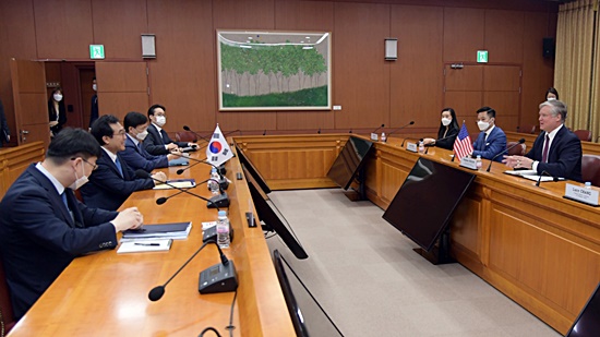 이도훈 한반도평화교섭본부장은 “우리는 현 상황에 비춰서 조속한 시일 내에 대화의 물꼬를 틀 수 있는 방도에 대해 심도있게 협의했다”고 알렸다. “문제 해결을 위해서는 대화와 협상만이 유일한 방법이고 이를 위해 한미는 조속한 재개를 위해 전력을 다해나가야 한다”고 강조했다.