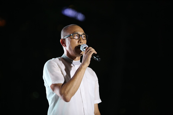 ▲ 희망새 마지막 노래 ‘아침은 빛나라’에 춤꾼 이삼헌씨가 단일기를 들고 춤을 추고 있다. [사진제공-조국통일촉진대회준비위원회]