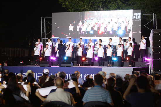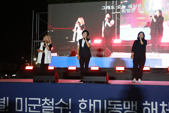 ▲ 3차 촉진대회는 재미과 감동, 웃음과 눈물, 힘찬 투쟁 결의로 2시간 내내 박진감 넘치게 진행됐다. 결의문 낭독 이후 전체 구호제창과 폐회선언과 함께 <주한미군철거가>를 부르며 대회가 마무리됐다. [사진제공-조국통일촉진대회준비위원회]