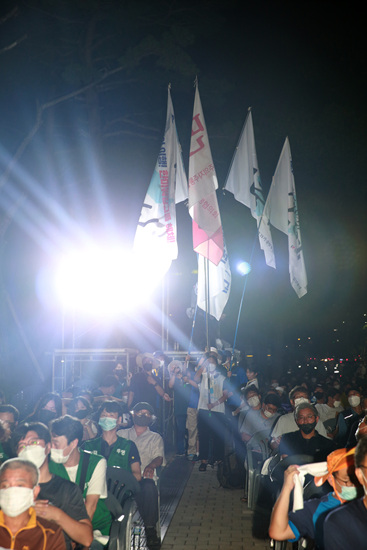 ▲ 3차 촉진대회에 참가한 광주지역 일반노동조합 조합원들. 조용곤 위원장은 통일운동의 계절성, 간부중심의 반미운동에 대해 비판하고 민주노총의 분발과 조합원들의 각성을 촉구했다. 또한 노동자 집단이 통일운동의 주역으로 나서야 한다고 강조했다. [사진제공-조국통일촉진대회준비위원회]