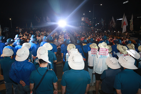▲ ‘민중의 노래’를 합창하고 있는 노량진수산시장 상인들. 이들은 5년째 수협 자본과 권력에 맞서 투쟁하고 있다. [사진제공-조국통일촉진대회준비위원회]