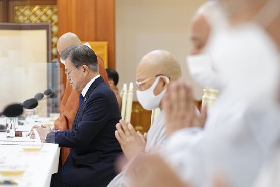 문 대통령은 “불교는 1700년간 이 땅에 고난을 이겨내는 힘이 되었다. 호국과 독립, 민주와 평화의 길을 가는 국민들 곁에 언제나 불교가 있었다”고 지적했다.