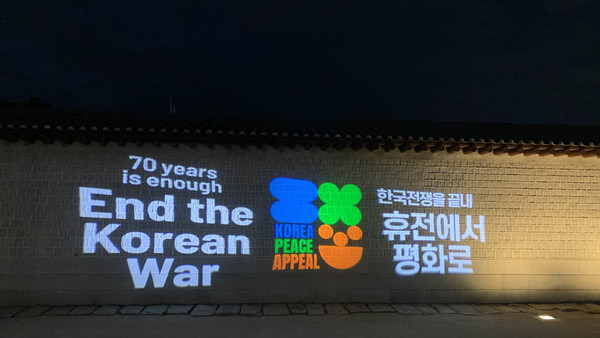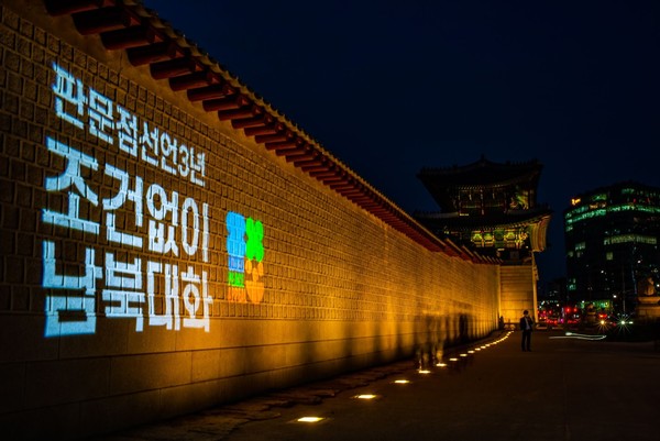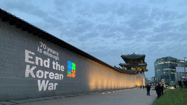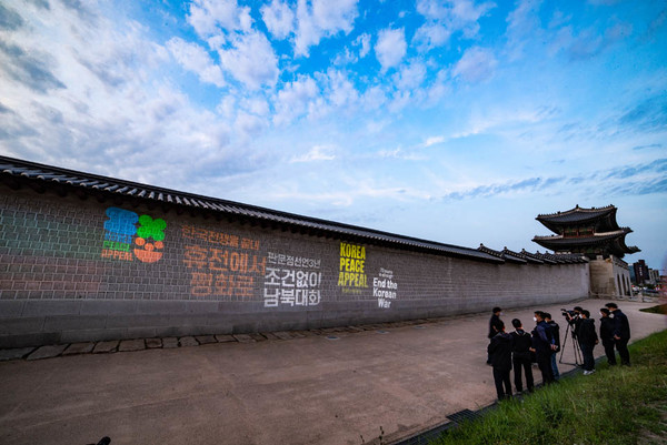 한반도 종전 평화 캠페인은 ‘한반도의 평화와 번영, 통일을 위한 판문점 선언’ 발표 3년을 하루 앞둔 26일 저녁, 서울 광화문에서 “한반도 종전 평화 빛으로 외치다 : 한국전쟁을 끝내자 End the Korean War” 조명 프로젝션 퍼포먼스를 진행했다.