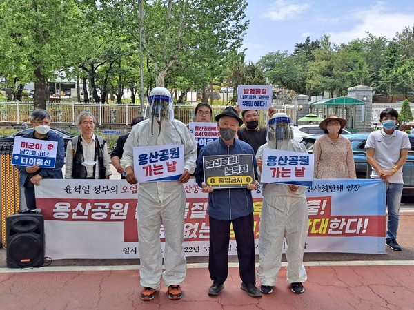 이들 단체는 기자회견문을 통해 "졸속적으로 공원을 조성하고 개방할 것이 아니라, 정밀조사를 포함한 환경정화작업을 절차대로 진행하고, 깨끗하게 정화해야 한다"며, "용산공원 개방보다 오염정화가 먼저"라고 강조했다.