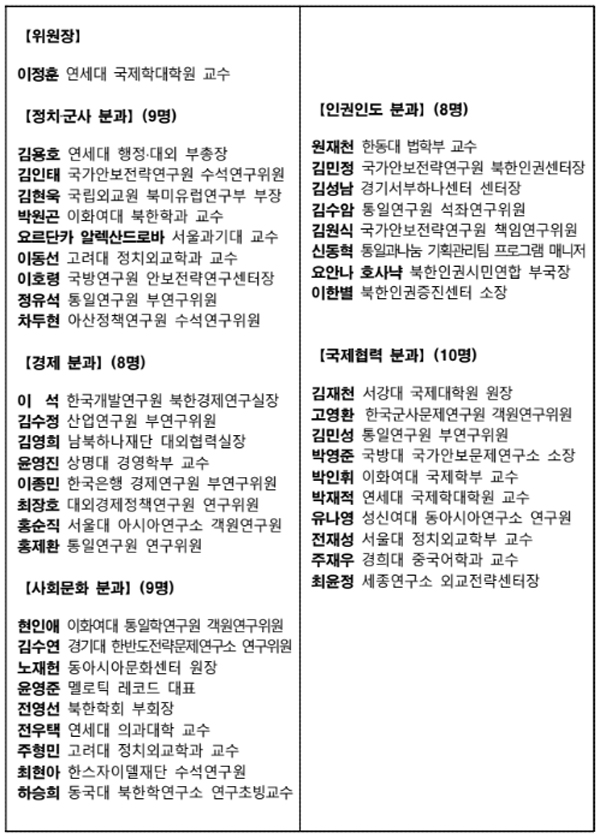 이날 제2기 통일미래기획위원회 위원장으로 연임된 이정훈 연세대학교 국제학대학원 교수는 더욱 노골적으로 '자유민주주의 체제 통일'을 역설했다.