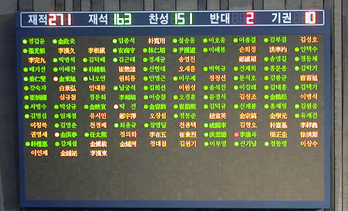이날 본회의장에는 고건 국무총리, 강금실 법무부장관 등이 참석한 가운데 의원들의 ‘노무현대통령 불법사전선거운동에 관한 긴급현안질문’이 이어졌다.