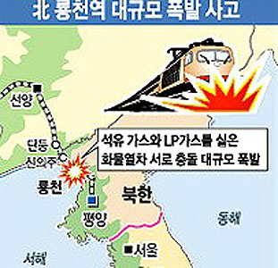 ▶22일 오후 2시경 북한 평안북도 룡천역에서 열차 폭