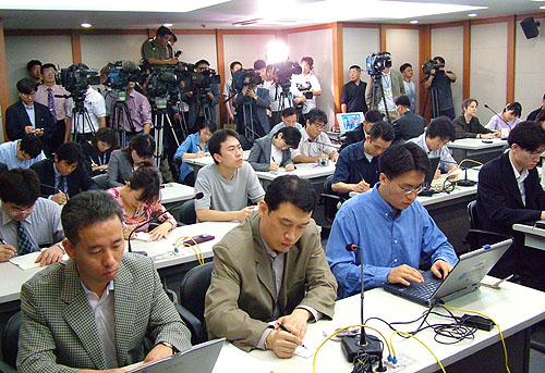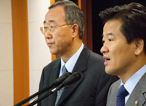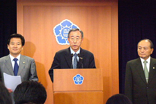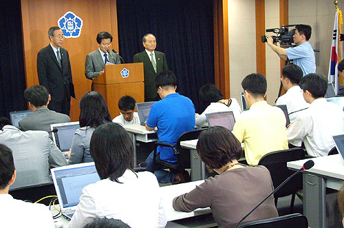 18일 오전 9시 15분 서울 세종로 정부종합청사 제 1 기자회견장에서 NSC 상임위원장을 겸하고 있는 정동영 통일부 장관과 반기문 외교부 장관, 오명 과학기술부 장관은 이례적인 합동기자회견을 갖고 이같은 내용이 담긴 'NSC 상임위 발표문'을 발표했다.