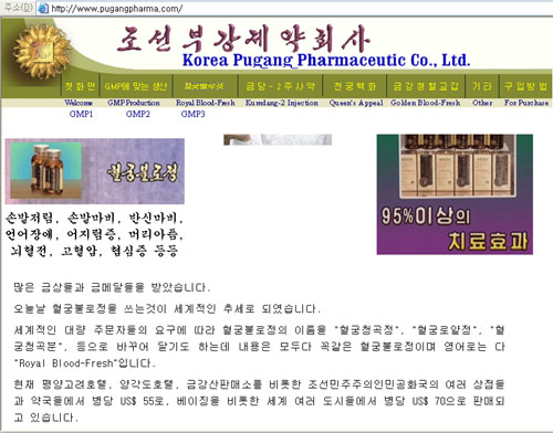'혈궁불로정'은 북한의 부강제약(http://www.pugangpharma.com)에서 생산하고 수출하는 제품으로, 이 회사는 최근 자사의 인터넷 홈페이지를 통해 이 제품이“현재 평양고려호텔, 양각도호텔, 금강산판매소를 비롯한 조선민주주의인민공화국의 여러 상점들과 약국들에서 병당 US$ 55(약 66,000원)로, 베이징을 비롯한 세계 여러 도시들에서 병당 US$ 70(약 84,000원)으로 판매되고 있습니다"라고 밝혔다.