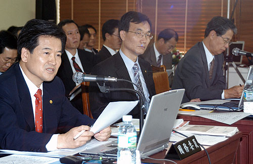 이날 국정감사에는 열린우리당, 민주노동당, 한나라당 등 통일외교통상위원회 소속 의원 25명이 참석해 초반 열띤 참고인 심문을 벌였으나 오후 2시경 헌법재판소가 수도이전특별법에 대해 위헌결정을 내린 탓에 분위기가 산만해졌다.
