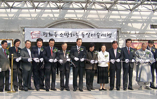 27일 오후 2시 국회 의원회관 1층 로비에서 열린 '2004 평화기원 북녘작가미술전의 개막식'에서는 기존에 테이프를 절단하는 방식에서 벗어나, 분단을 종식하고 평화를 기원하는 모형 철조망이 참석인사들에 의해 잘렸다.