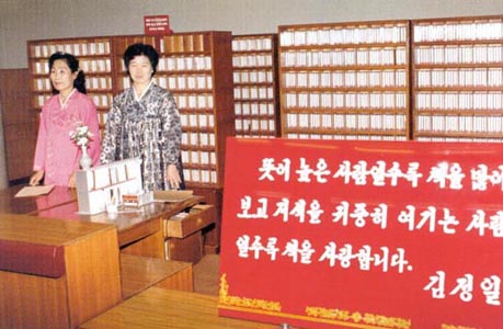 김정일 국방위원장의 책 사랑 구호가 적혀있는 인민대학습당. 근무자들의 한복차림이 이채롭다. 저작권자 © 통일뉴스 무단전재 및 재배포 금지 연합뉴스 tongil@tongilnews.com SNS 기사보내기 페이스북(으)로 기사보내기 트위터(으)로 기사보내기 카카오스토리(으)로 기사보내기 카카오톡(으)로 기사보내기 URL복사(으)로 기사보내기 이메일(으)로 기사보내기 다른 공유 찾기 기사스크랩하기 북, 각 대학들에 창조형 인재육성을 위한 교육환경 구축 북, 9차 당대회 앞두고 '강원도정신' 연일 강조...연말 성과 독려 응원봉 다시 들고 나온 시민들, 사법부 규탄 트럼프 “우크라이나 종전, 몇 가지 이견만 남아” 청주한씨와 [청주한씨족보]에 관하여 김 총리, “신속하고 확실하게 내란 정리해야” 댓글삭제 삭제한 댓글은 다시 복구할 수 없습니다. 그래도 삭제하시겠습니까? 비밀번호 닫기 기사 댓글 0 댓글 접기 로그인 후 이용 가능합니다. 댓글 내용입력 비회원 로그인 이름 비밀번호 댓글 내용입력 댓글쓰기 계정을 선택하시면 로그인·계정인증을 통해 댓글을 남기실 수 있습니다. 회원 로그인 비회원 글쓰기 이름 비밀번호 자동등록방지 로그인 옵션 창닫기