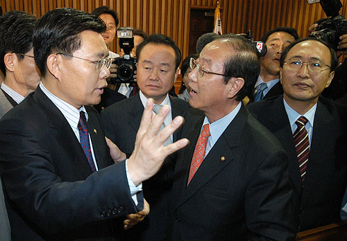 열린우리당 최재천 의원을 비롯한 열린우리당 의원들은 산회가 선포되자 삿대질을 하고 고성을 지르며 항의했으며 열린우리당 선병렬 의원은 법사위원장석으로 달려가 의사봉을 두드리는 최 법사위원장을 저지하기도 했다.