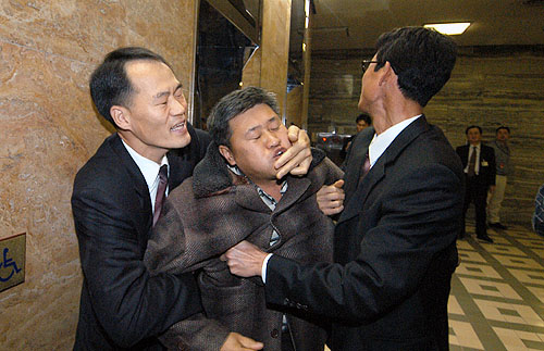 시위대들의 소란이 진정되자 한나라당 최병국 의원은 발언에 나서 "여당이 이 협정안들을 통과시킬 의지가 있는지 의심스럽다"며 "시위대를 국회안에 들어오도록 소개까지 하면서 여기서는 통과시키자고 하는 게 말이 되느냐"고 비난하고 "이런 분위기에서는 회의 못한다"고 으름장을 놓기도 했다.