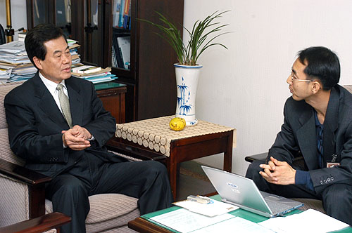 6일 오후 3시 국회의원회관에서 민주노동당이 최초로 진출시킨 10명의 국회의원단을 원내에서 이끌고 있는 천영세 의원단 대표를 만나 최근 상황과 민주노동당의 입장을 들어보았다.