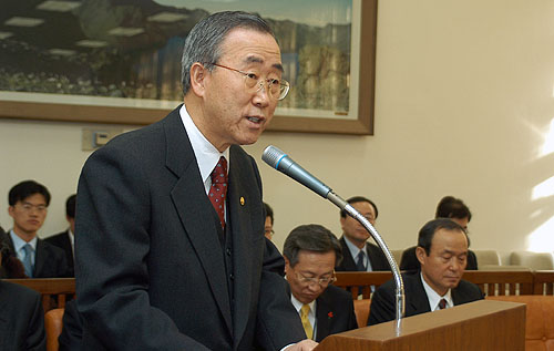 ▶13일 국회 통일외교통상위에서 반기문 외교통상부 장관이 업무보고를 하고 있다. [사진 - 통일뉴스 김규종기자]