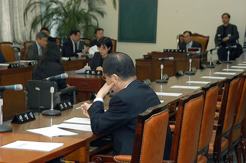 ▶이날 상임위에는 한나라당 의원들이 불참해 야당 의석에는 권영길 민노당 의원만이 자리를 지켰다. [사진 - 통일뉴스 김규종기자]