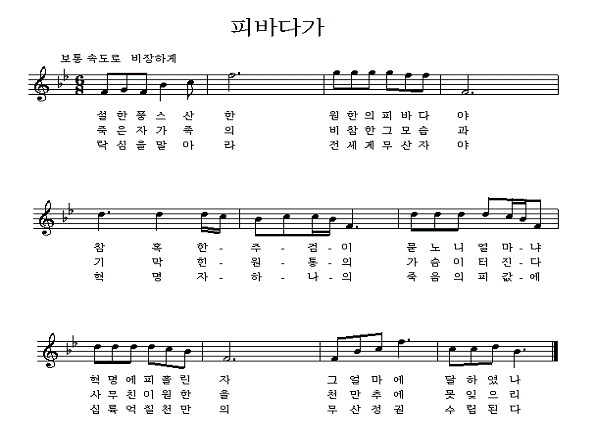 혁명가극 《피바다》의 기본주제곡인 《피바다가》는 가사에서 짐승도 낯을 붉힐 일제침략자들의 잔인하고 포악한 만행으로 말미암아 피바다에 잠긴 조선의 참혹한 현실과 민중들이 겪는 크나큰 재난과 불행, 일제에 대한 피맺힌 원한과 치솟는 복수심, 광명한 미래에 대한 열렬한 지향을 깊이 있고 폭넓게 반영하고 있다.