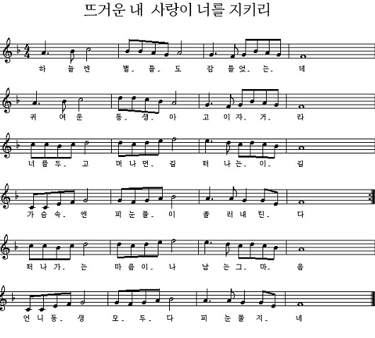 3. 궂은 비 내리여도 눈보라쳐도/ 뜨거운 내 사랑이 너를 지키리