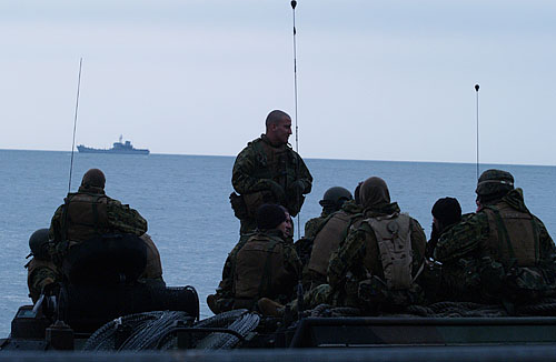 40대의 수륙양용상륙장갑차 중 34대는 한국 해병대 소속이며, 나머지 6대는 미군 장갑차다. 이 장갑차는 실제 상륙작전이 진행되면 지상전에 투입될 해병대 병력을 해양으로부터 육지로 수송하는 역할을 한다. 이날 장갑차에는 20여명의 군병력이 탑승했다. 미군에게 어디에서 왔냐고 묻자 “오끼나와에서 왔다”고 답했다.