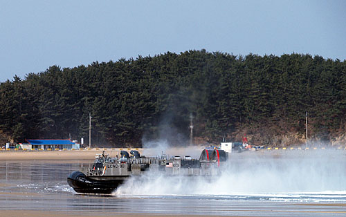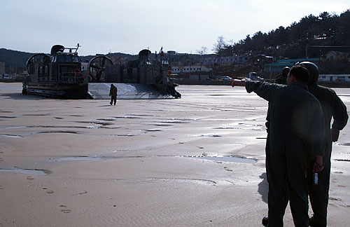 LCAC-90 역시 상륙함에서 나온 것이며 실전에서는 대개 상륙에 필요한 수송장비를 실어나른다. 해안에 도착한 미군은 내일(30일) 있을 본연습을 위해 상륙지점을 정하고 표시물을 설치했다.