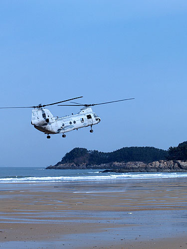 유도차량에 해안에 내리기 직전 수송기(CH-46) 2대가 북편 해안에 잠시 착륙하고 뜨는 등 본연습을 위한 착륙지점 등을 익히기도 했다.