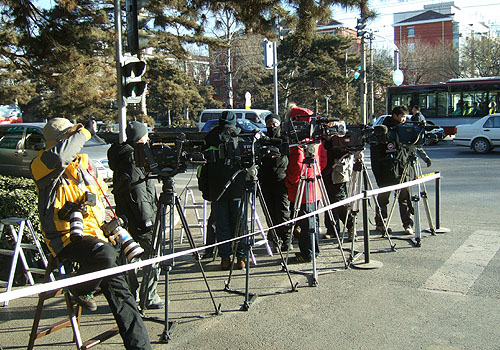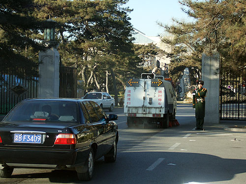 챠오양구(조양구) 르탄북로에 위치한 북한대사관 앞도 중국 공안 한 명이 경비를 서고 있을 뿐이고 역시 몇몇 외신 기자들이 출입자들을 주시하고 있는 한산한 풍경이다. 북한대사관 정문은 4차 6자회담 당시에는 없던 철책을 새로 설치해 경계를 강화해두고 있다.